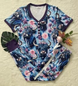 In Production:SS Jogger PJ Set-#7-Highland Cow Floral (Close 8/10/2025)